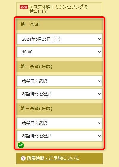 体験エステを受ける日時を選択