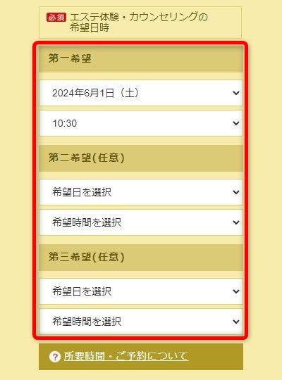 体験エステを受ける日時を選択