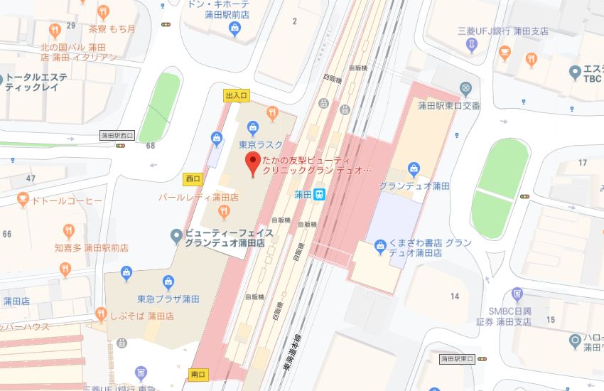 たかの友梨グランデュオ蒲田店のグーグルマップ