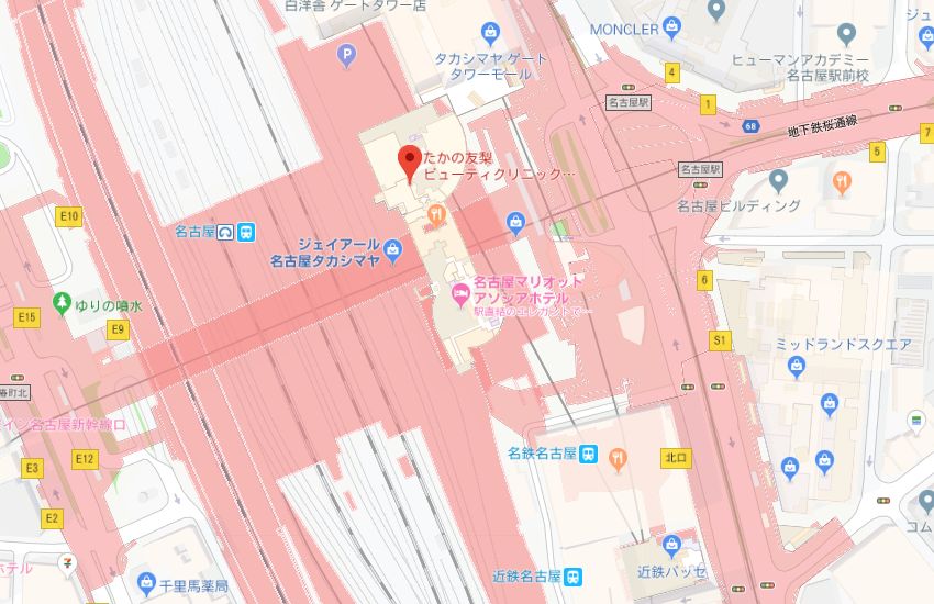 たかの友梨名古屋マリオットアソシアホテル店のグーグルマップ