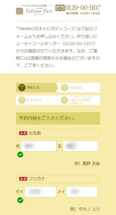 たかの友梨浦和店の体験エステの予約申し込みはこちら